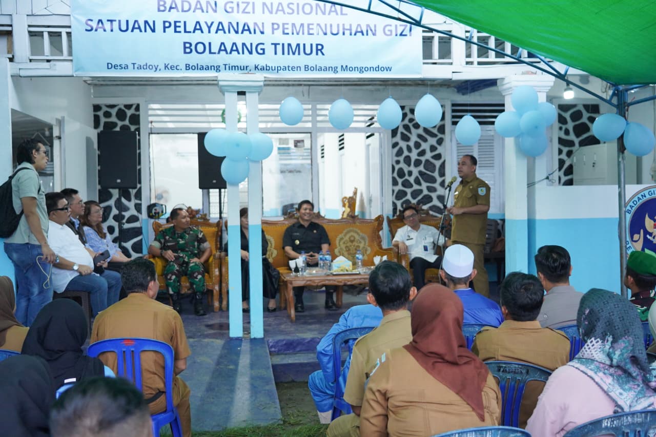 Kepala Kantor Satuan Pelayanan Pemenuhan Gizi Nasional Wilayah Kerja Manaso-Gorontalo Dr. Billy K Kereh SI.P M.Si dalam sambutannya mengatakan Kabupaten Bolaang Mongondow memiliki 23 SPPG yang akan dibangun termasuk di Kecamatan Bolaang Timur Desa Tadoi I. “Untuk sementara, kita sudah bangun Lima SPPG, tiga diantaranya sudah beroperasi sisanya sementara tahap pembangunan Dapur SPPG,” Kata Billy.