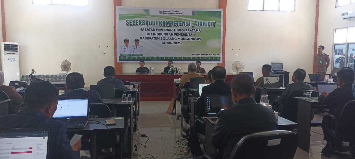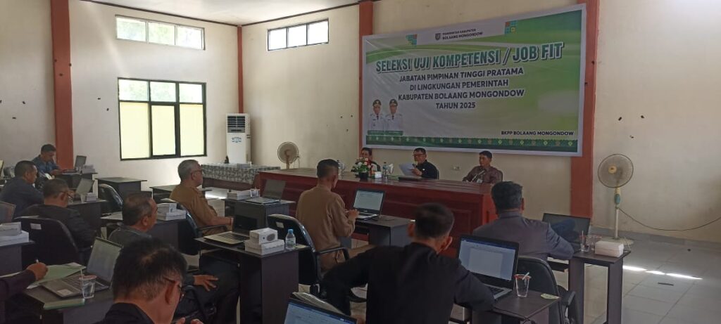 BOLMONG, dutademokrasi.co.id– Uji kompetensi (Job Fit) bagi pejabat eselon II Pemerintah Kabupaten Bolaang Mongondow (Bolmong) resmi dimulai, Senin (22/12/2025). Uji kompetensi itu dibuka Sekretaris daerah (Sekda) Bolmong Abdullah Mokoginta di ruang CAT Kantor Badan Kepegawaian Pendidikan dan Pelatihan (BKPP).