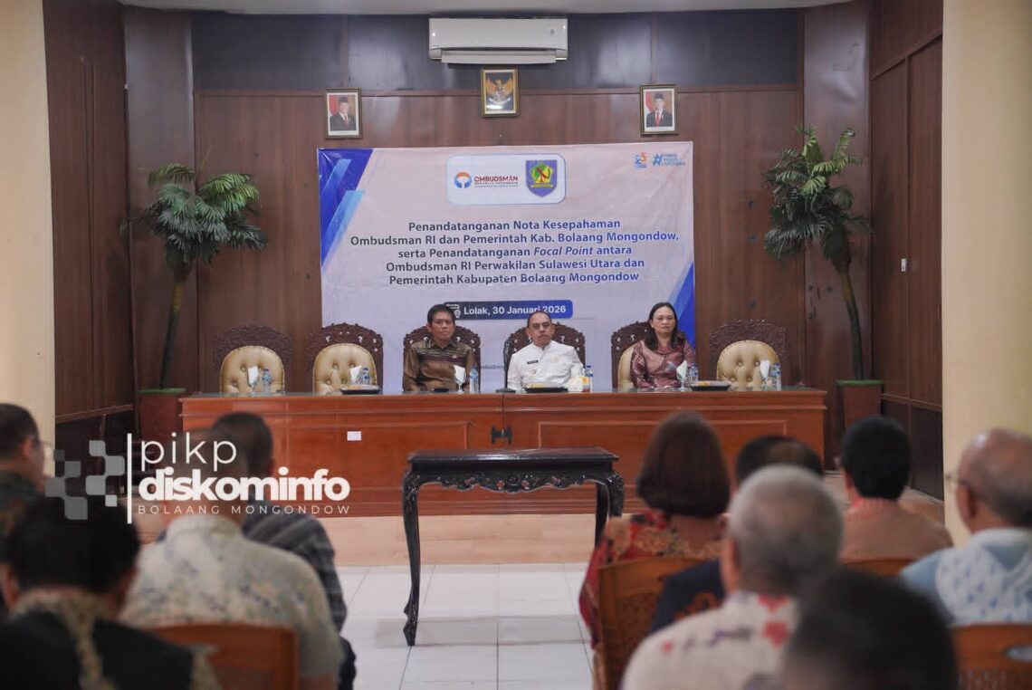 Bupati Yusra Alhabsyi dan Wakil Bupati Dony Lumenta mewujudkannya melalui Komitmen bersama melalui penandatanganan Nota Kesepakatan antara Pemkab Bolaang Mongondow dan Ombudsman Republik Indonesia, yang digelar di Ruang Rapat Sekretariat Lantai II, Kantor Bupati Bolaang Mongondow, Jumat (30/01/2026).