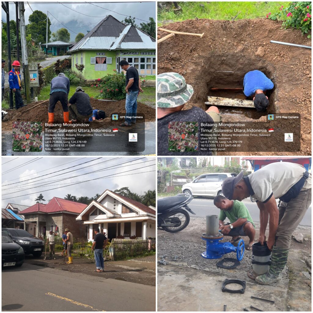 BOLMONG, dutademokrasi.co.id–Perumda Air Minum Tirta Bukaka terus melakukan perbaikan Jalur pipa untuk mempercepat tekanan air yang dibutuhkan oleh pelanggan. Dalam proses perbaikan tersebut, ditemukan Jalur aliran air transmisi di wilayah Desa Bongkudai mengalami penurunan debit air.