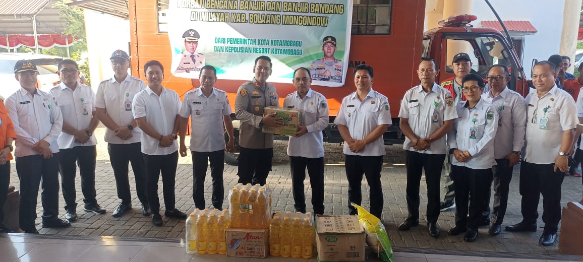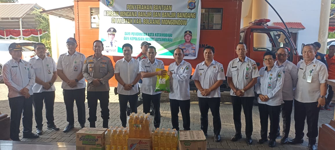Bantuan dibawah langsung oleh Walikota dr. Wenny Gaib didampingi oleh Wakil Wali kota Rendi Mangkat. Juga bantuan dari Polres Kota Kotamobagu diserahkan langsung oleh Kapolres AKBP Irwanto SIK MH. Turut hadir juga Sekretaris Daerah Kota Kotamobagu Sofyanto Mokoginta SH ME.