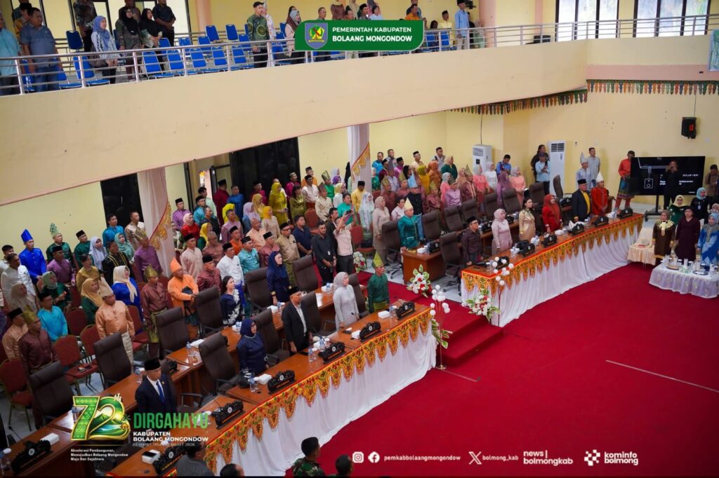 BOLMONG, dutademokrasi.co.id– Rapat Paripurna Dewan Perwakilan Rakyat Daerah (DPRD) kabupaten Bolaang Mongondow menggelar rapat pariprna terkait dengan Periingatan Hari Ulang Tahun (HUT) daerah ke 72 tahun. rapat ini diselenggarakan di Ruang Rapat Paripurna DPRD Kantor Sekretariat DPRD Bolmong-Lolak, Jumat (27/03/2026).
