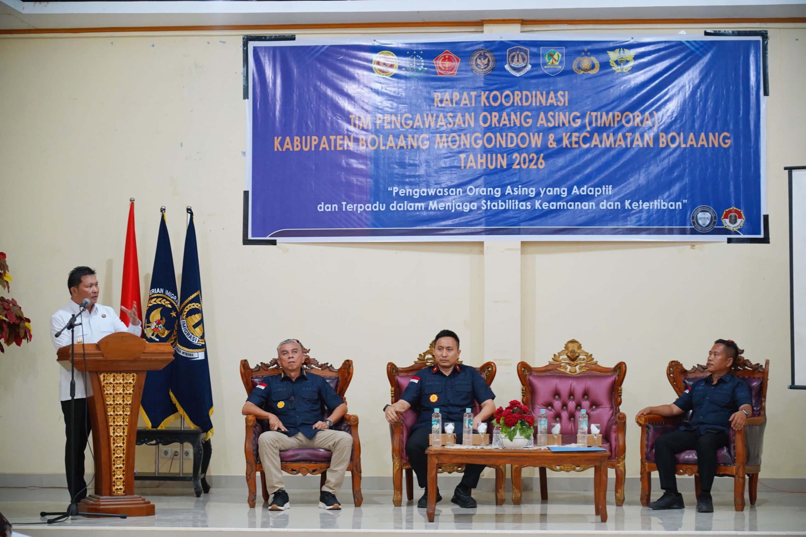 BOLMONG, dutademokrasi.co.id– Tim Pemantau Orang Asing (Timpora) Kabupaten Bolaang Mongondow menggelar Rapat Koordinasi di Atlantik Hotel Kelurahan Inobonto I, Kamis (12/02/2026). Kegiatan ini dihadiri oleh Wakil Bupati Dony Lumenta mewakili Bupati Yusra Alhabsyi.