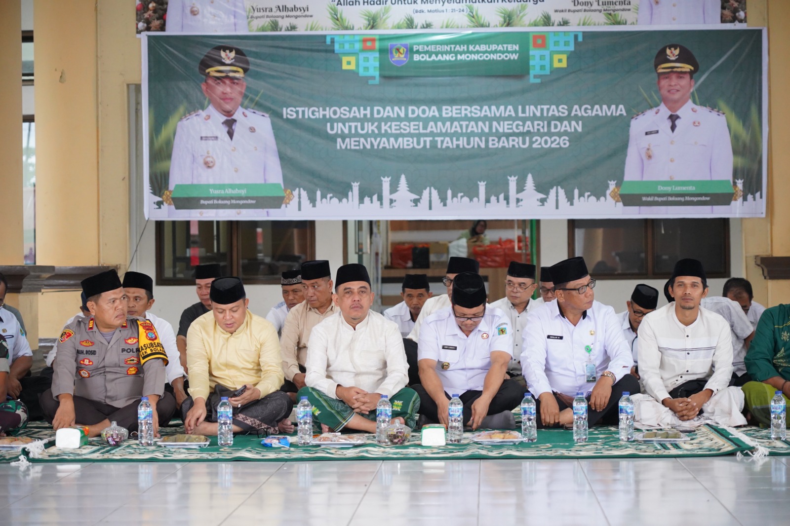 BOLMONG, dutademokrasi.co.id– Bupati Yusra Alhabsyi dan Wakil Bupati Dony Lumenta penghujung tahun 2025, menutupnya dengan menyelenggarakan Istighosah dan Doa Bersama Lintas Agama. Acara ini digelar di Pelataran Kantor Bupati Bolaang Mongondow yang dihadiri oleh seluruh jajaran pemerintahan daerah.
