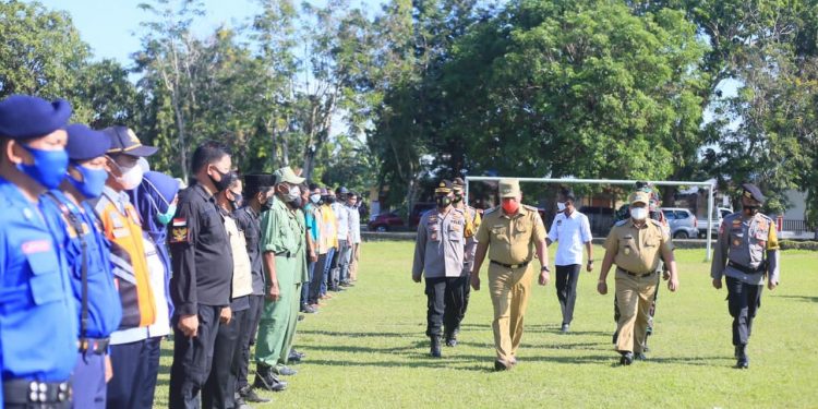 Dan sebelum diterjunkan seluruh personil mengikuti apel pergeseran pasukan yang dipusatkan dilapangan kembar boroko yang dihadiri Bupati Depri Pontoh dan Wakil Bupati Amin Lasena, Kejari Bolmut, Pabung 1303 Bolaang Mongondow, Ketua KPU, Ketua Bawaslu Bolmut, pimpinan SKPD terkait, dan para Sangadi.