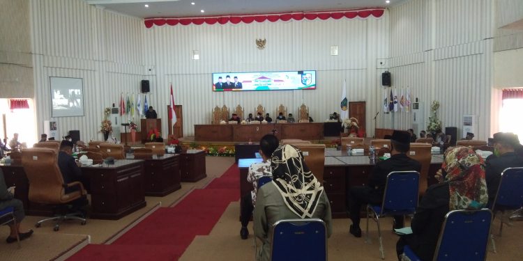 BOLMUT,dutademokrasi.com – Ketua Dewan Perwakilan Rakyat Daerah (DPRD) Bolaang Mongondow Utara (Bolmut), Frangky Chendra dan Pemerintah Daerah yang diwakili oleh Wakil Bupati, Drs Amin Lasena meneken nota kesepakatan Kebijakan Umum Anggaran (KUA) – Prioritas Plafon Anggaran Sementara (PPAS) Perubahan Anggaran Pendapatan Belanja Daerah (APBD) Kabupaten Bolmut tahun anggaran 2020, bertempat diruang Paripurna, Kamis (23/09’2020).