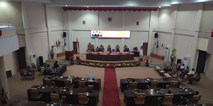 BOLMUT,dutademokrasi.com – Dewan Perwakilan Rakyat Daerah (DPRD) Kabupaten Bolaang Mongondow Utara (Bolmut) menggelar rapat paripurna dalam rangka penyampaian Kebijakan Umum Anggaran dan Prioritas Plafon Anggaran Sementara (KUA-PPAS) tahun anggaran 2021, Rabu (19/08/2020).