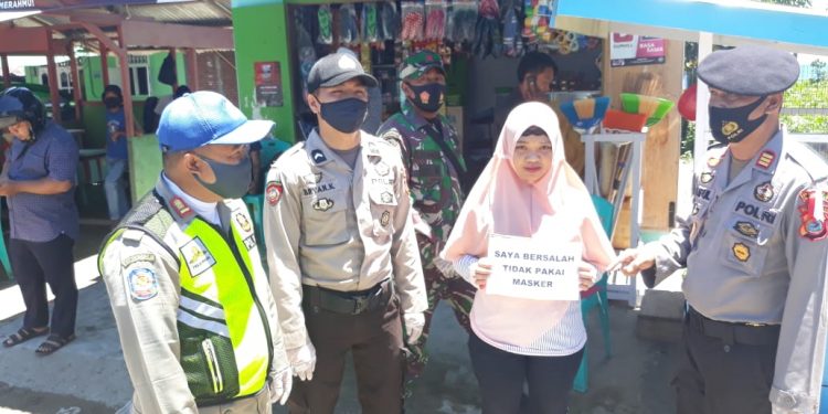 BOLMUT,dutademokrasi.com – Polres Kabupaten Bolaang Mongondow Utara dan TNI bersama Pemerintah Daerah setempat melaksanakan operasi justisi pendisiplinan masyarakat berupa razia masker disejjumlah titik pertokoan, SPBU, Pasar tradisional dan dijalan trans sulawesi yang ada diwilayah enam kecamatan.