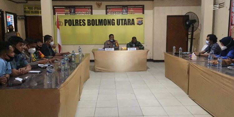 BOLMUT,dutademokrasi.com – Untuk mengantisipasi bencana dikabupaten Bolaang Mongondow Utara (Bolmut), Kapolres AKBP Wahyu Purwidiarso,SIK,SH menggelar Rapat Koordinasi Antisipasi Bencana dengan sejumlah instansi terkait, bertempat diruang Mapolres Bolmut, Jumat (06/11/2020).