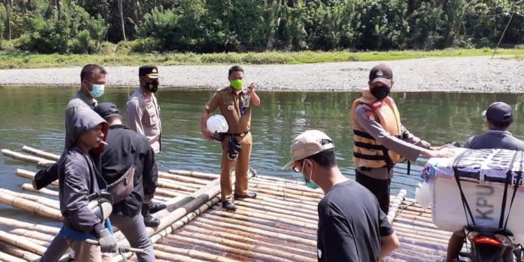 BOLMUT,dutademokrasi.com – Kapolres Bolaang Mongondow Utara, AKBP Wahyu Purwidiarso, SH, SIK bersama Komisioner Komisi Pemilihan Umum (KPU) dan Bawaslu meninjau pendistribusian logistik Pilgub Sulawesi Utara sejak dari gudang KPU hingga ke desa desa terpencil.