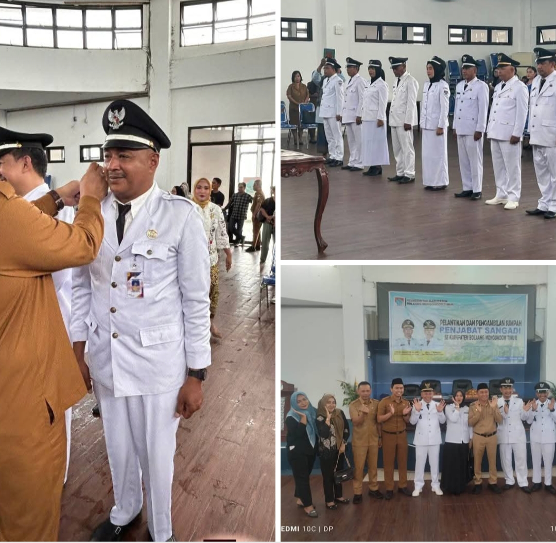 Boltim – Mewakili Bupati Bolaang Mongondow Timur (Boltim), Oskar Manoppo, Wakil Bupati Argo V. Sumaiku secara resmi melantik dan mengambil sumpah jabatan 11 Penjabat (Pj) Sangadi se-Kabupaten Bolaang Mongondow Timur.