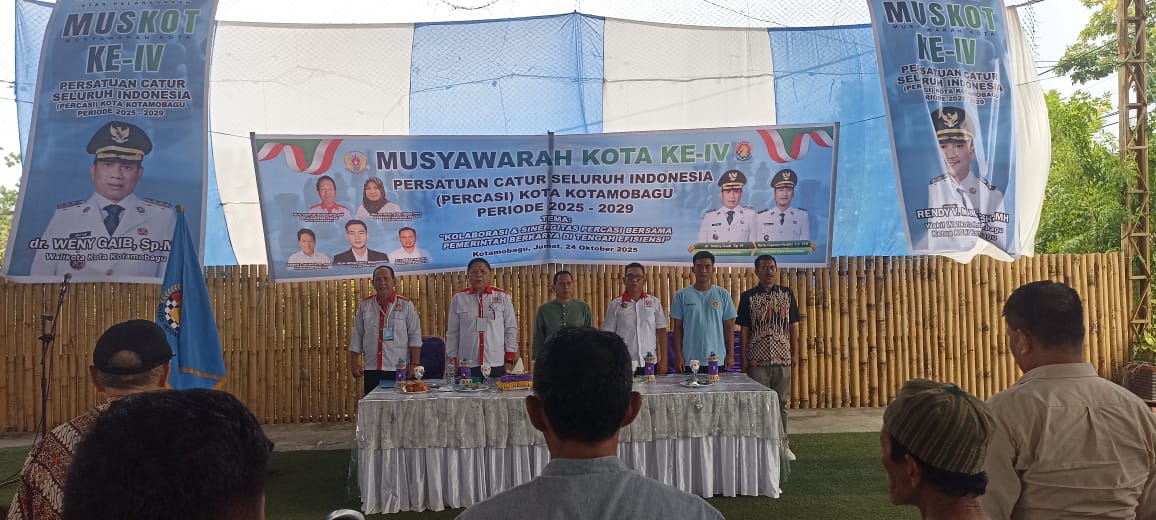 KOTAMOBAGU, dutademokrasi.co.id– Musyawarah Kota (Muskot) ke IV Kota Kotamobagu digelar di Foodsal Cafe Koto bangun, Kota Kotamobagu, Jumat (24/10/2025) dibuka langsung oleh Walikota dr. Wenny Gaib Sp. M. Hadir dalam pelaksanaan ini, Ketua Harian Percasi Sulawesi Utara Hery Benyamin.