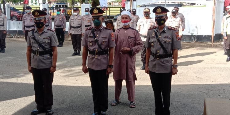 Dan dalam upacara Serah terima jabatan Kapolsek yang dilaksanakan di Halaman kantor Mapolres Bolmut, Selasa (06/07/2021), dipimpin langsung oleh Kapolres AKBP Wahyu Purwidiarso SH, SIK yang dihadiri oleh seluruh PJU, Kapolsek dan anggota Polres Bolmut dengan tetap menerapkan Protokol Kesehatan.