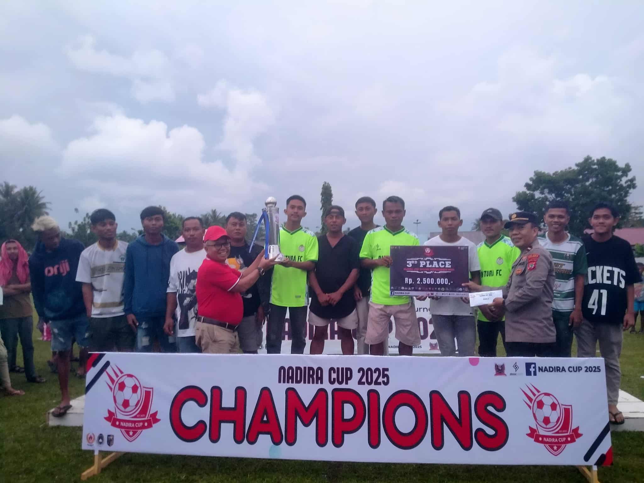 “Saya memberikan apresiasi setinggi-tingginya kepada Ibu Dewi Zandra Astuti Mondo atas inisiatif dan kontribusinya sebagai sponsor utama Nadira Cup ini. Karena melalui kegiatan ini. Ibu Dewi telah menunjukkan semangat kebersamaan dan kepedulian terhadap pengembangan generasi muda di Pinogaluman,” bebernya.