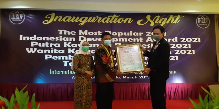 MANADO,dutademokrasi.com – Kepala Dinas Pekerjaan Umum dan Penataan Ruang Kabupaten Bolaang Mongondow Utara, Rudini Sumitro Masuara terima penghargaan putra berprestasi dalam pembangunan Sulawesi Utara oleh dari International Human Resource Development Program (IHRDP) Foundation dihotel Aston Manado, Sabtu (20/03/2021).