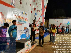 MANADO, dutademokrasi.com –  Federasi Panjat Tebing Indonesia (FPTI) Kabupaten Bolaang Mongondow Utara (Boltara) berhasil sumbang medali emas dan perunggu di ajang Porprov Sulawesi Utara 2025 yang berlangsung di Kota Manado pada Minggu (24/1/2025).